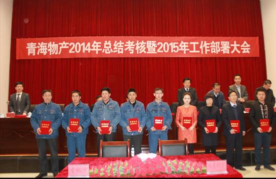 2015年1月31日,青海ok138cn太阳集团古天乐总公司召开"青海物产经营发展2014年总结考核暨2015年工作部署大会"。 会议由集团纪委书记李志明主持,省国资委党委委员、副主任崔文德,省国资委第二监事会主席张守杰、省国资委考核与分配处处长侯自进、省国资委党群工作处调研员贺连成、省国资委第二监事会专职监事唐刚、省国资委纪委干部李世晶莅临大会,集团领导、所属各公司班子成员、受表彰人员、离退休人员、总部员工参加了会议。