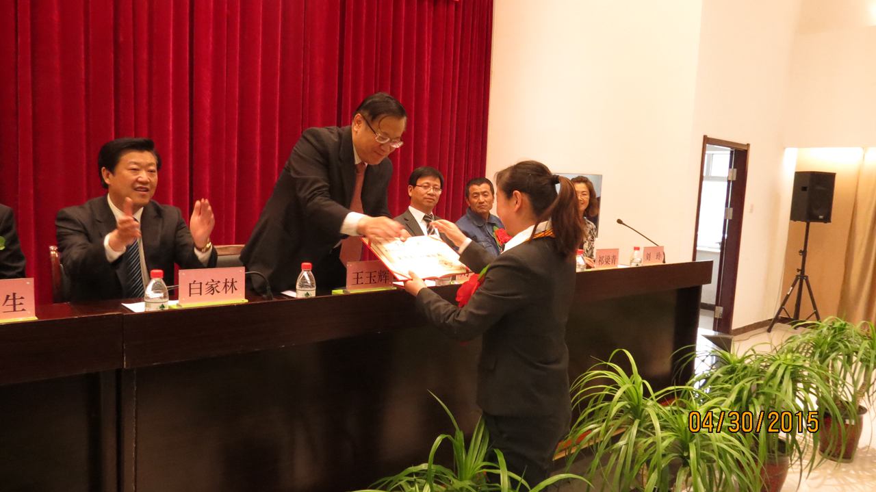 集团总经理王玉辉首先为荣获"全国五一巾帼标兵"荣誉称号的青海物产汽车贸易有限公司销售总监刘少侠颁发了荣誉证书。