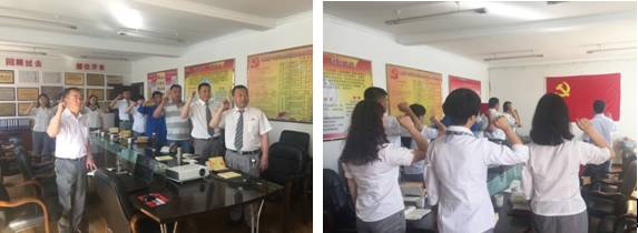 2016年6月30日,青海物产汽贸公司党支部组织全体党员庆"七一"上党课。党课开始之前,全体党员面向党旗重温了《入党誓词》。"我志愿加入中国共产党,拥护党的纲领,遵守党的章程,履行党员义务,执行党的决定,严守党的纪律,保守党的秘密,对党忠诚,积极工作,为共产主义奋斗终身,随时准备为党和人民牺牲一切!永不叛党"。0000.jpg