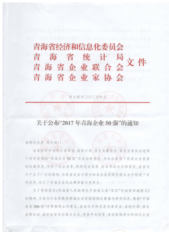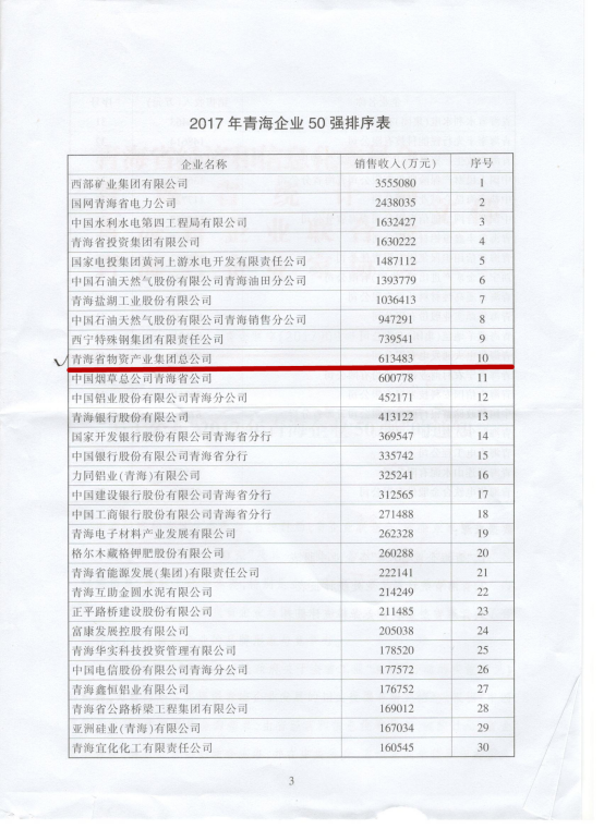 集团综合部 讯 (陈茜/文)2016年,物产集团面对持续加大的经济下行压力,主动适应经济发展新常态,积极融入"一带一路"建设机遇期,努力推动供给侧结构性改革,全力促进转型经济升级、抢抓机遇、攻坚克难、扎实工作,保持了营收平稳增长;效益平稳提升;项目平稳推进,结构不断优化的良好态势,再次入围青海企业50强。请所属各公司再接再厉,勇于创新、奋发作为,确保青海物产稳健发展。