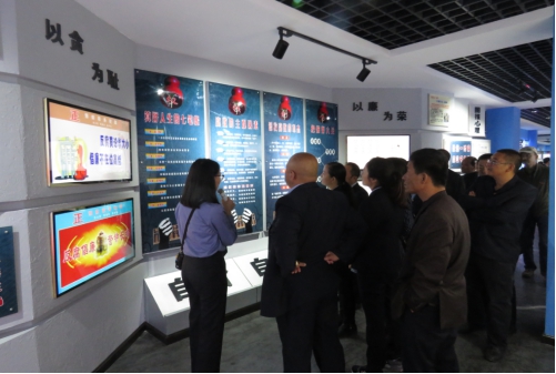 在廉政教育基地,全体党员干部认真聆听讲解员讲解,仔细参观"高瞻远瞩"、"政策法规"、"廉政风范"、"警钟长鸣"、"共建成果"篇和观看"警示教育片"等几个部分的廉政教育内容。警示教育展以实物、图片、文字、影音、雕塑、模拟场景等形式,采用先进的声光电技术等多种演示手段,重点展示了新中国建立以来,党和国家领导人关于党风廉政建设的论述、建党以来的反腐历程和近年来我省反腐倡廉工作成果、查处的"大老虎、苍蝇"、部分贪污腐败大案要案。参观活动中,通过每一个触目惊心的腐败案例、每一幅发人深省的图片和忏悔,以及对典型警示案例和腐败现象的深层剖析,给在场的全体党员干部强烈的视觉冲击和心灵震撼,深刻教育了每一名党员干部,再次警醒党员干部要坚定理想信念,筑牢防腐拒变的思想防线。