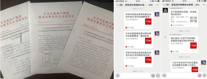 公司党委按照"早发现、早报告、早隔离、早治疗"的要求,立即启动应急响应机制。一是在第一时间,成立以党委书记为组长的新型冠状病毒感染的肺炎防控工作小组和防控新型冠状病毒感染肺炎疫情工作督查组,统一指挥协调疫情防控工作。二是所属党支部、团支部分别成立党员突击队和青年突击队,奋战疫情防控第一线,充分发挥党支部战斗堡垒、党员先锋模范、团员青年骨干作用。三是制定《新型冠状病毒感染的肺炎疫情防控措施》,成立统筹协调、舆情监控报道、后勤保障、安全保卫等4个工作小组,明确职责分工、统筹推进工作落实。四是利用微信建立新型冠状病毒感染的肺炎疫情防控工作小组群,多频次、高密度交流工作情况、研究分析疫情、查找薄弱环节、商定下步工作举措,各项防控工作有序开展。截止目前,公司领导、员工分享了52条卫生防疫知识,让大家对新型冠状病毒感染的肺炎疫情有了更充分的认识和更有效的防范措施。