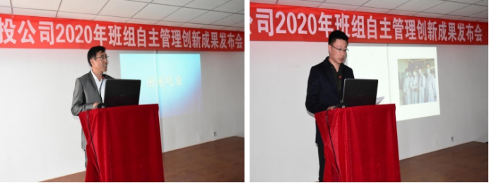 发布会上,发布人员向与会人员从成果的项目背景、创新原因和目的、项目目标、实施方案、创新特点、效益分析及推广情况几个方面运用PPT的形式,详细介绍了班组自主创新成果。