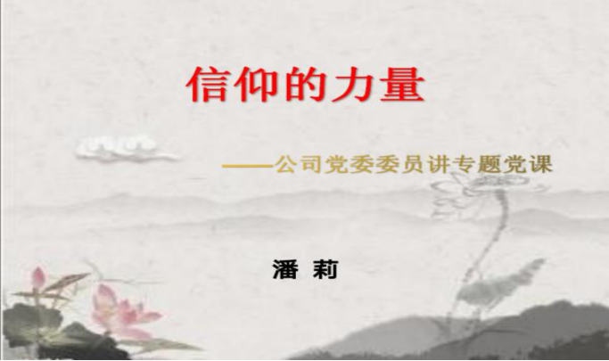 公司党委委员、纪委副书记潘莉同志以《信仰的力量》为题讲专题党课。党课从"信仰可以使强大的对手臣服;信仰可以升华世界上最伟大的爱;信仰缺失可以让一个民族失去方向"三大主题阐述了信仰的力量是无穷的,坚定的理想信念,永远是激励我们奋勇向前、克难制胜的不竭力量源泉。