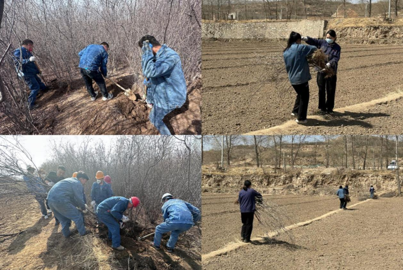 活动前期,公司领导班子成员根据物产北川工业物流园实际情况提前谋划,多频次与大通县孙家寨村沟通,将该村“退林还田”亟待处置的桃树和紫丁香树等绿植资源整合接洽,并有规划、有步骤地移栽回园区各处。