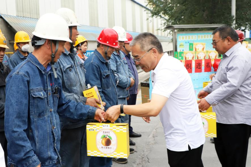 夏日送清凉,点滴沁人心。8月14日,青海省总工会纪检监察组组长祁维正,省总工会二级巡视员张文辉等一行3人莅临青海物产工业投资有限公司开展“夏送清凉”慰问活动,为夏日高温下的一线职工送去组织关怀。集团副总经理、工会主席张允忠等相关人员陪同。