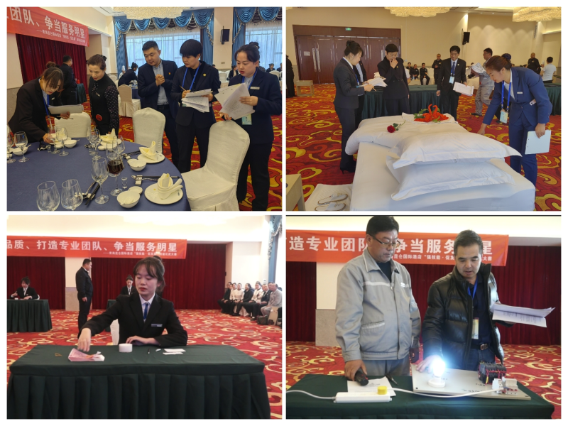 本次技能比武大赛决赛包含中餐宴会摆台、中式铺床、点钞和二次线路制作四个项目比赛。参与中餐宴会摆台和中式铺床的人员不仅有专业选手,还包括安全部和工程部等复合型人员,体现了公司一岗多能、一人多岗复合型人才培养理念。同时,还有中西式厨房菜品创新展示。经过各参赛项目的综合评比打分,最终决出了6个一等奖、11个二等奖和17个三等奖。