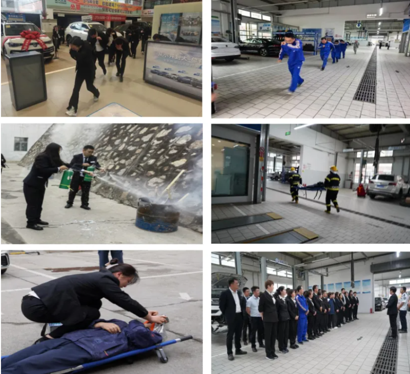 在灭火综合应急演练环节。随着一阵急促的警报声响起,“火灾”迅速蔓延。全体干部职工在听到指令后,迅速到位,在最短的时间内,从办公室、销售展厅及售后车间,通过疏散小组人员的口令加手势,进行了有序的疏散,把现场所有人员,快捷有序的疏散到安全地带。