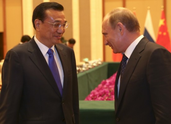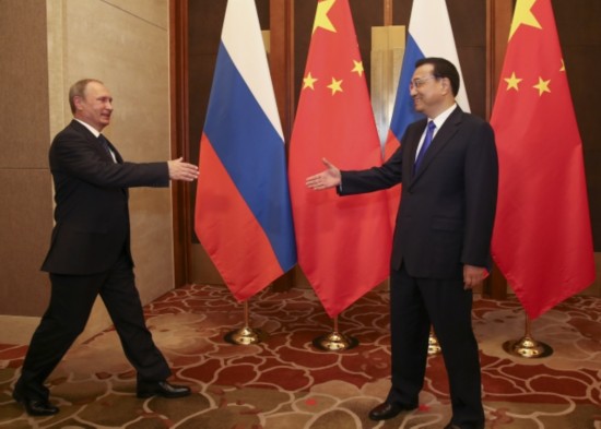 李克强总理会见俄罗斯总统普京时说:"中俄两国是战略伙伴,互为最大邻国。共同维护二战胜利成果,反对歪曲篡改二战历史,这是我们的共识,也是对世界正义的伸张。"