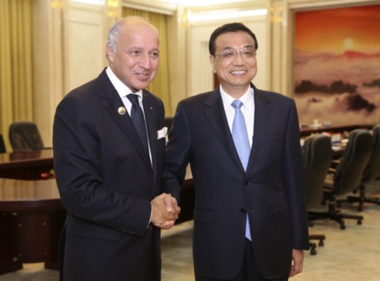 李克强总理会见法国外长法比尤斯时说:"希望把中法第三方合作和核能合作做成'南北合作'的示范项目,做成推动世界经济向复苏方向前行的引导性项目。"
