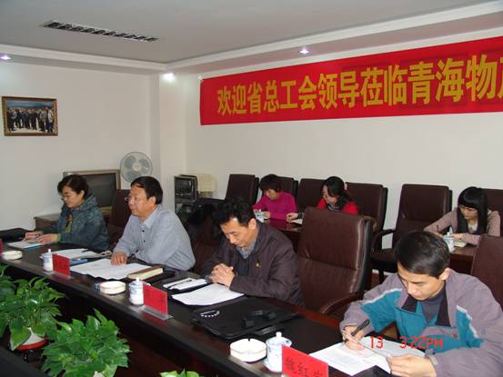 2012年12月13日下午,省总工会第六考核组组长、省总副巡视员兼法律保障部部长李忠云、考核组成员、省总机关党委专职副书记吕华、考核组成员、省总组织部副调研员姬红捷、考核组成员、省总经济部魏红岩一行莅临青海物产集团,对物产工会2012年度工作开展情况进行考核。