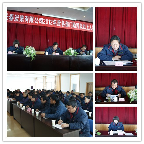 2013年1月10日,青海长春炭素有限公司在五楼会议室召开了2012年度各部门助理以上人员考评会议,党总支书记、公司总经理王松华、副总经理姜红萍、张秉瑜和各部门助理以上人员、职工代表共77人参加了会议。会议由副总经理张秉瑜主持。