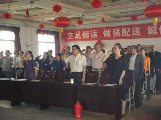 党委书记白国荣同志作了重要讲话,他说:今天公司全体党员齐聚一堂,共庆中国共产党成立92周年,在这个日子里,首先向全体党员同志们致以节日的问候!人的一生,可能会做出多次承诺,但就一个共产党员来说,在党旗下的宣誓是最神圣最庄严的,当前,受国内外经济形势等多方面影响,公司的经营状况不容乐观,正处在一个关键时期,希望同志们以这次重温入党誓词活动为新起点、新动力,发扬党的优良传统,牢记全心全意为人民服务的宗旨,在各自的工作岗位上倍加努力工作,在完成急难险新重任务的关键时刻,充分发挥党员的先锋模范作用,不辱使命,奋发有为,真正把党的政治优势和组织优势转化为企业的核心竞争力,转化为推动企业发展的强大力量,推进企业在新的形势下实现新的进步新的跨越,为圆满完成全年任务目标而努力奋斗。宣誓仪式在《没有共产党就没有新中国》的雄壮歌声中圆满结束。